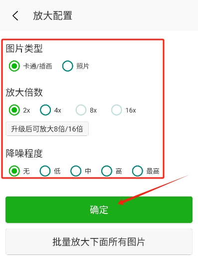 4、我们根据需求选择图片类、放大倍数和降噪程度。