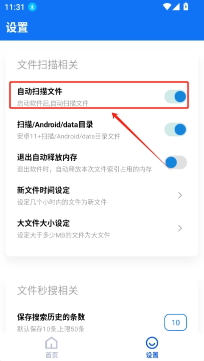 开启文件自动扫描功能