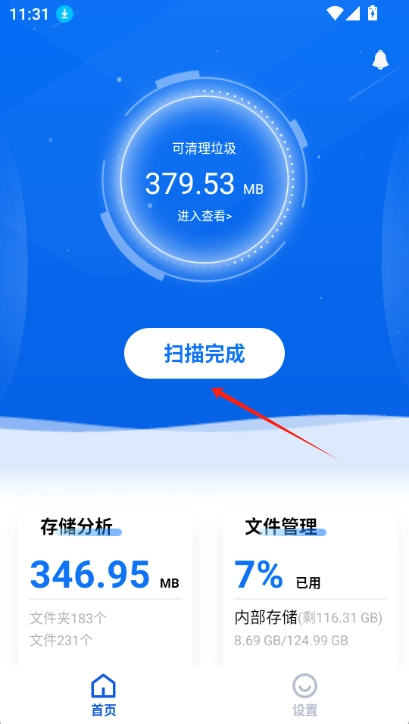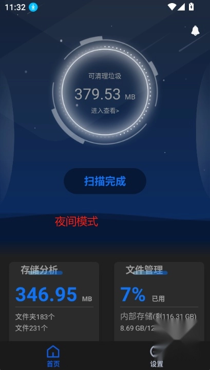 1.垃圾清理:可扫描手机内所有垃圾文件,提供一键清理功能,支持清理缓存垃圾、广告垃圾、空文件(夹)、冗余文件、卸载残留、安装包以及根目录隐藏文件等多种类型垃圾。