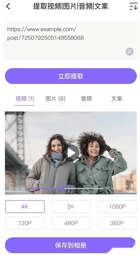 一键保存4K/1080P高清视频
