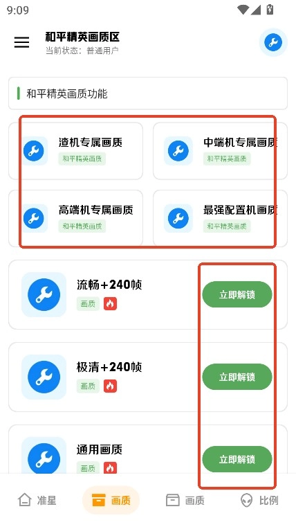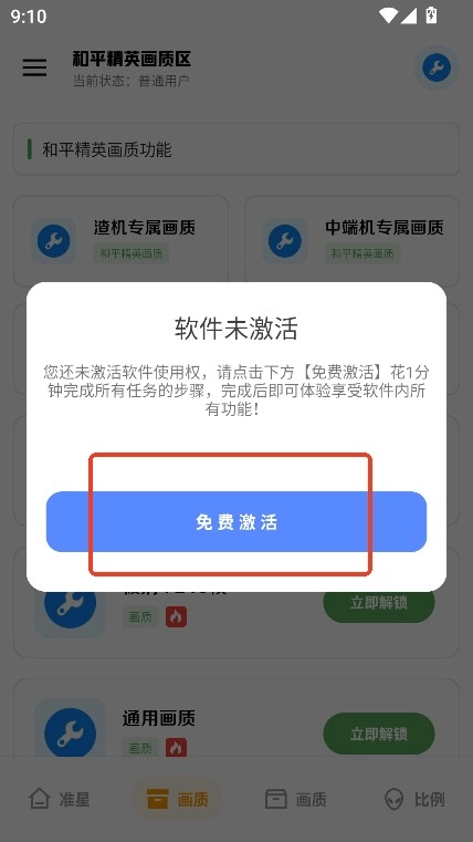 在下方的的画质功能列表选择相应的画质,如【渣机专用画质】;点击免费激活