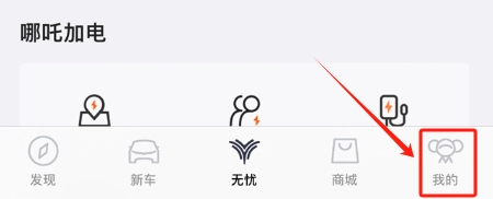 1. 打开哪吒汽车应用,点击右下角的“我的”选项,进入个人中心页面