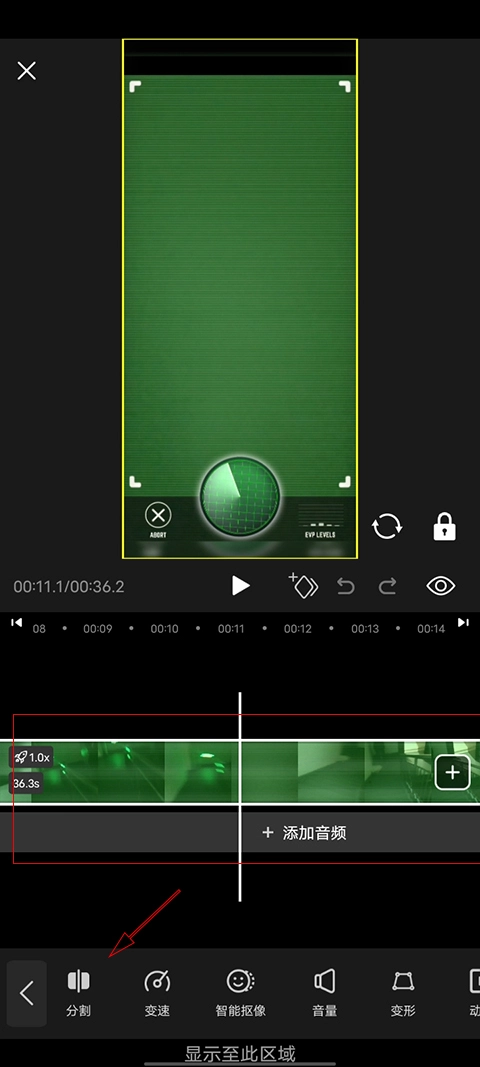 3. 将时间线切割线移动到需要截取的视频片段的起始位置,点击“分割”;再将移动到片尾点击“分割”。