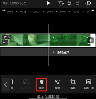 4. 选择被分割出来的不需要的部分后点击“删除”按钮,从而去除这段视频。