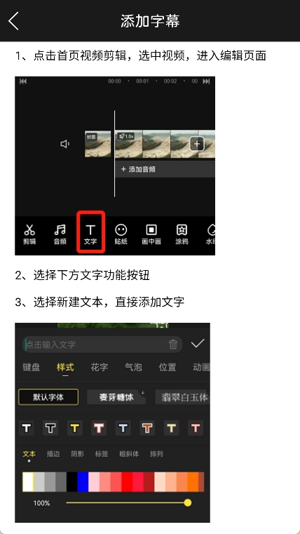6. 选择文字样式,输入我们想要添加的视频内容。