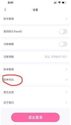 3、进入设置菜单后点击“账单导出”选项。