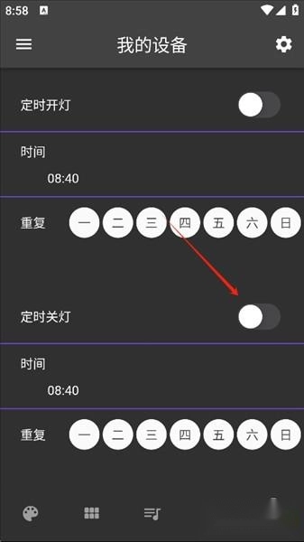 5、定时设置:进入“定时”页面,根据需要设定灯光开关时间,自定义每日照明计划。