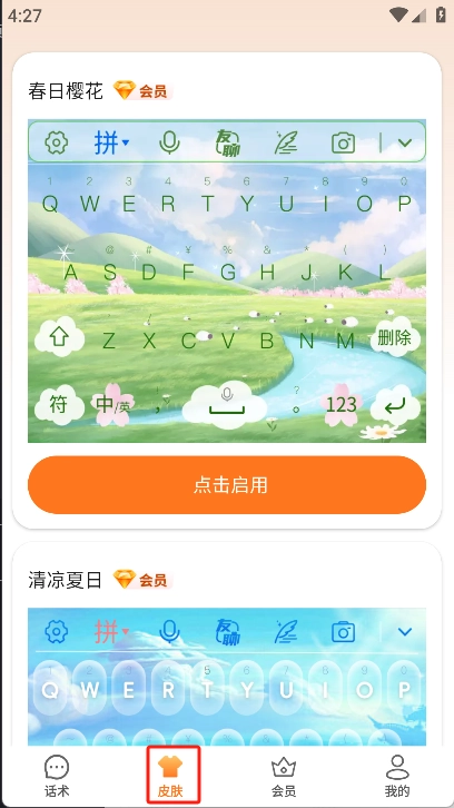3、登录成功后切换到“皮肤”,我们可以在这里浏览众多类型的输入法皮肤。