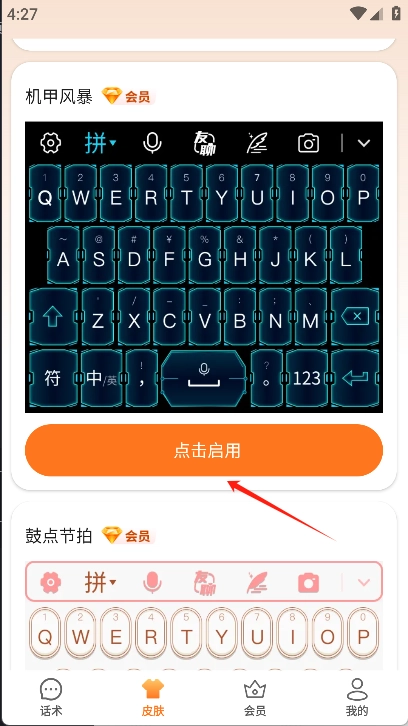 4、当选择好后,点击所选皮肤下面的“点击启用”按钮即可进行换肤。