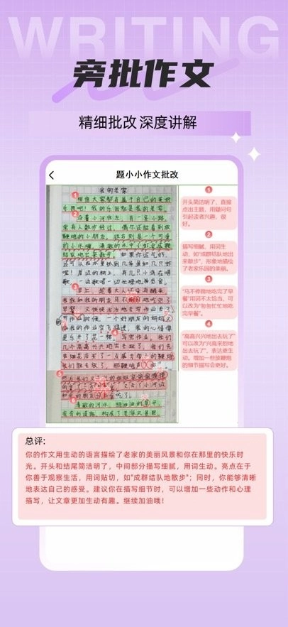 拍照上传就能智能批改作文,哪怕学生字迹再潦草也能精准识别!批改结果特别详尽,不仅会点明作文的长处与不足,还能给出极具针对性的改进建议。除此之外,还有全文润色、生成范文、梳理写作思路、优化修辞手法等实用功能!不少孩子面对作文时常常不知从何下笔,让他们先独立完成一篇,再及时给予反馈,告诉他们哪些地方写得精彩、哪些地方有待提升,这样才能帮助他们快速提高写作水平。