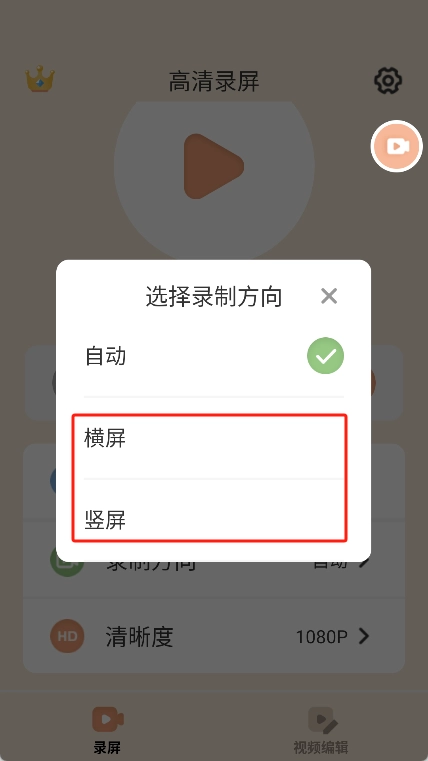2、在打开软件后,我们可以根据需要选择录制的方向,比如横屏、竖屏。