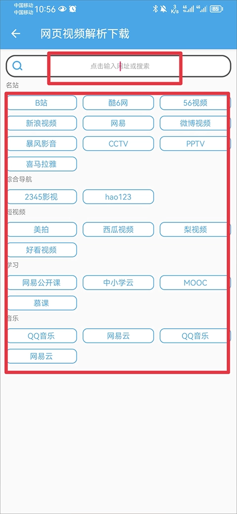 1、你可以在下方分类中选择平台,也可以将你在其他平台中复制的链接放在搜索框中进行解析