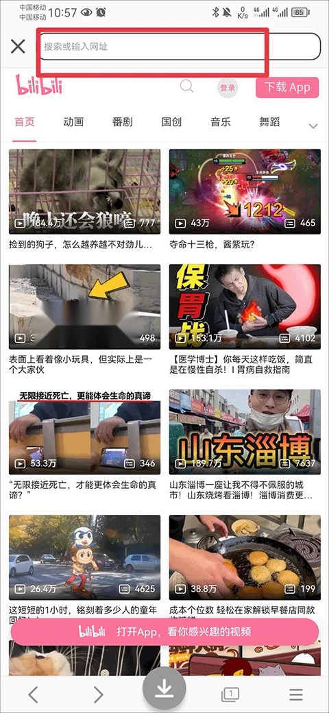 2、例如B站,点击进入B站后你可以在页面中搜索你喜欢的视频素材