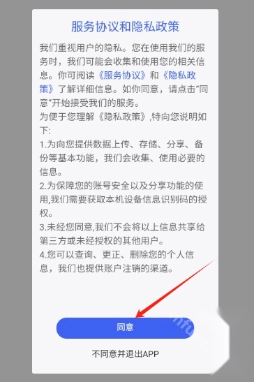 1. 安装好宰相办公手机版应用后,打开该应用,然后点击“同意”按钮。
