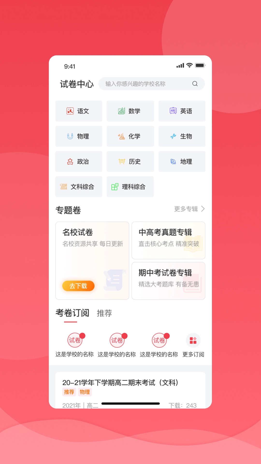 免费查看成绩、答题卡。订阅偏科分析、成绩趋势、知识点及失分统计等。同时支持拍照录错题,帮您整理各类错题,方便随时随地重练。