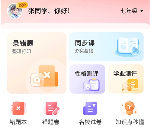 2.依托其强大的平台能力,七天学堂为家长带来一系列全方位的服务,包括考试解读、学情分析、错题整理、名优校优质试卷资料以及丰富的课程视频资源等。