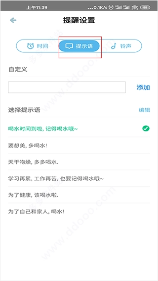 3. 软件还提供提示语提醒服务,我们可以选择自定义提示语或者使用系统预设的提示语。