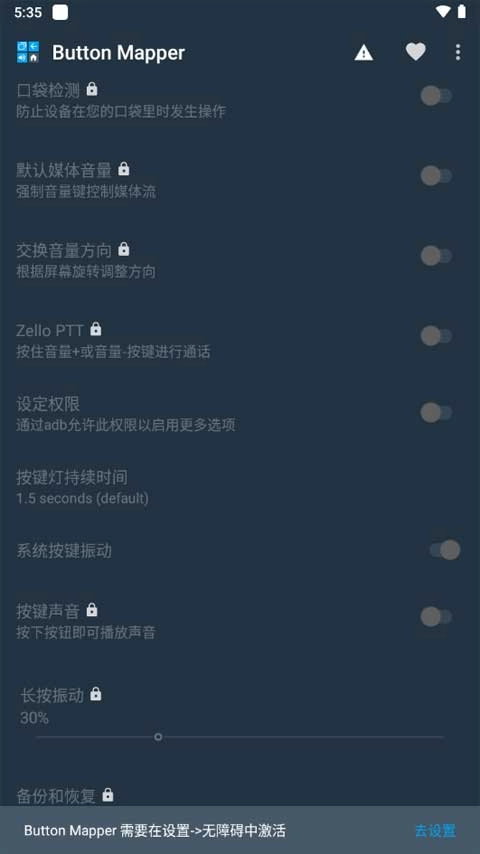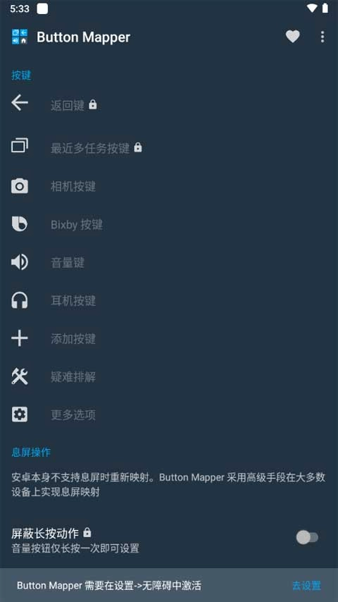 1.打开Button Mer,开启无障碍服务;
