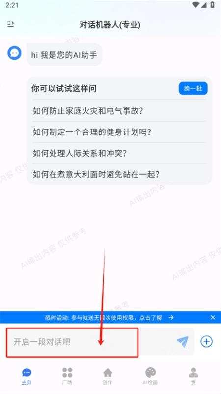 1、已安装我方AI软件。 2、打开软件进入主页后,在对话框中输入内容并发送即可。