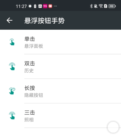 2.悬浮按钮支持多种手势操作:单击、双击、长按以及三击,每种手势都有特定的功能。
