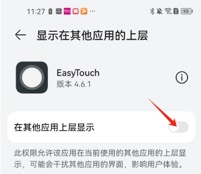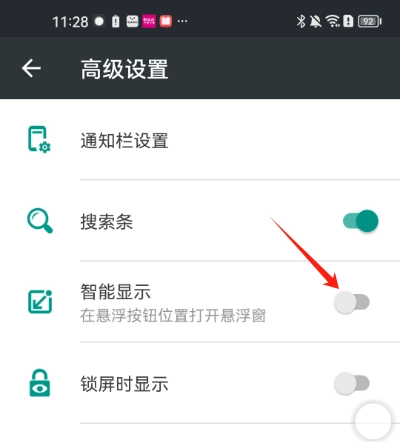 3.在easytouch高级设置里,将智能显示开关打开即可。