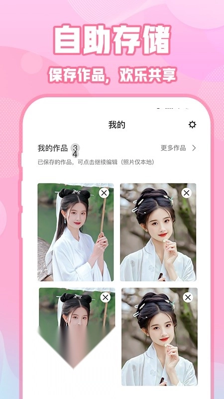 这里提供长发、短发、刘海造型以及不同发色的选择,只需按下快门,就能预览自己变换发型后的样子。快来尝试发现新的自己吧!