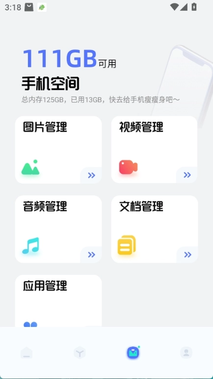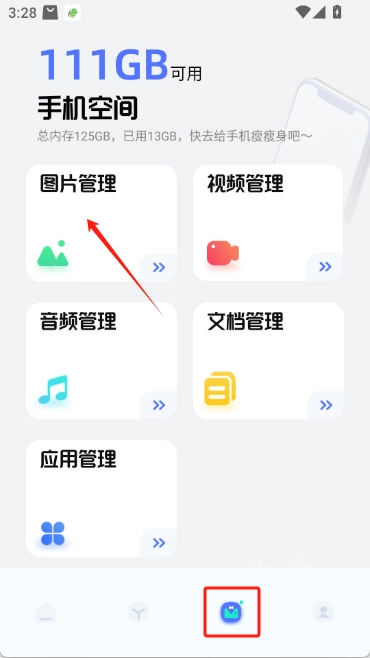 2.点击第三个图标,也就是手机空间板块,点击图片管理
