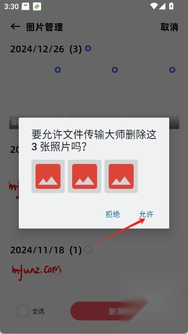 5.在弹出的对话框中点击允许。不要的图片就删除了。