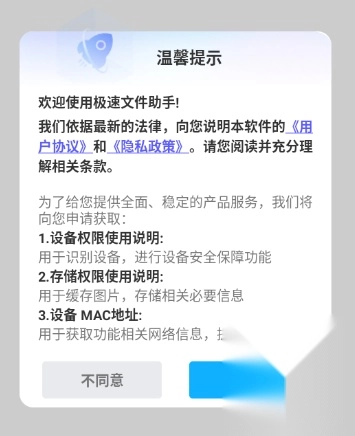 1、启动极速文件助手,点击同意按钮