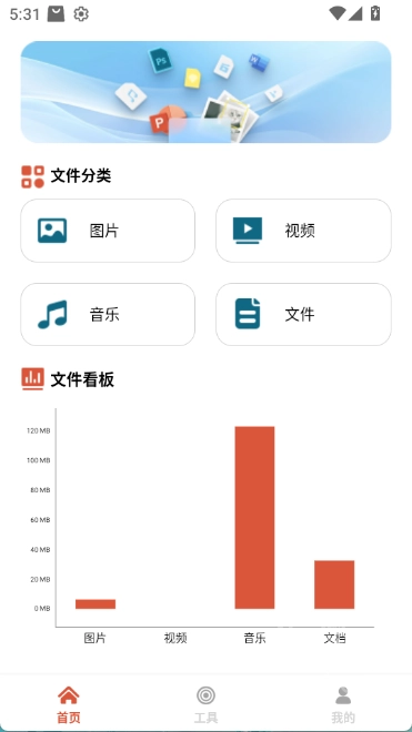 1.文件分类:极速文件助手可自动识别手机里的图片、视频、音频与文档文件并进行分类,帮助用户快速定位到需要的文件。