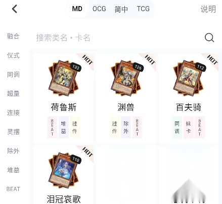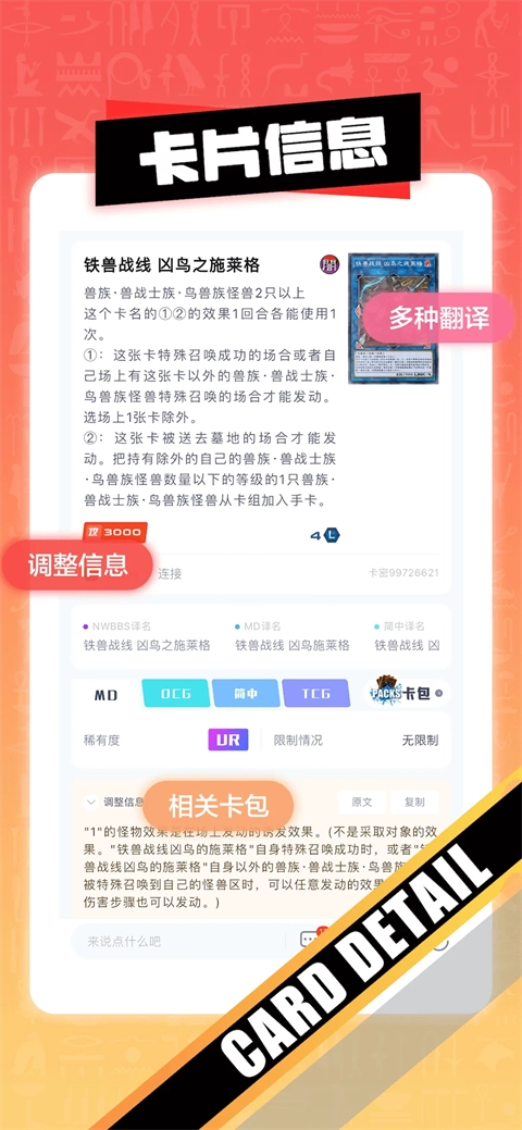 4. 「卡片查询」:详尽查询卡片的描述、属性、种族等信息,方便快速搜索所需卡片。