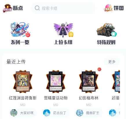 3.可以查看和选择各种卡组,也有超多网友上传的牌组信息。游戏王中的每一张卡都可以在这里查看到。