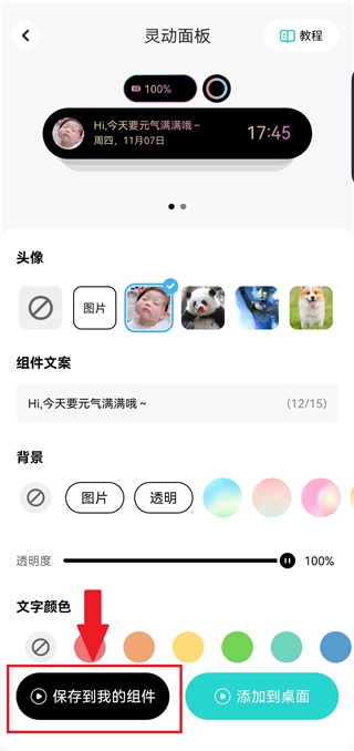 5、点击页面左下方的【保存到我的组件】以保存设置。