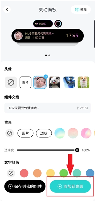 4、选中喜欢的组件后,可对其背景和文字进行个性化修改。