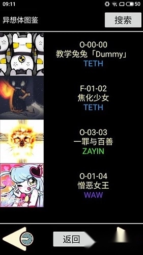 3、整合了所有85个异想体的基础图像和数据资料,包含文字和数字搜索功能