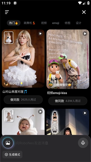RoboNeo是美图秀秀推出的多模态AI图片视频编辑工具,能把自然语言转化为修图指令,通过轻松对话就能完成复杂的视觉创作,人像精修、视频剪辑、平面设计、文生图都能一键实现。不管是社交媒体内容创作者还是创意设计师,RoboNeo都能显著降低视觉创作的门槛,让专业级的影像处理变得简单又高效。不用再进行繁琐的手动操作,说出你的需求,AI就会为你处理好一切,马上体验AI时代影像创作的新方法吧!