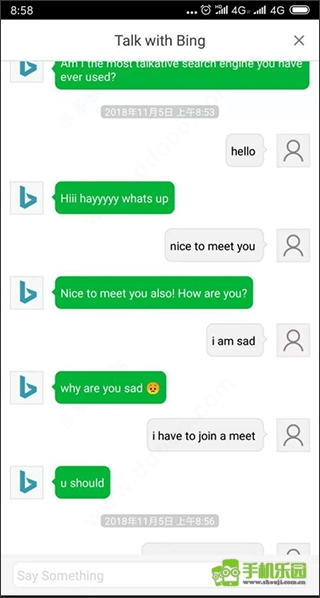 2、在输入框中输入“I want chat with bing in phone”,若输入其他文字则无法调出AI对话机器人,仅具备简单的搜索功能。
