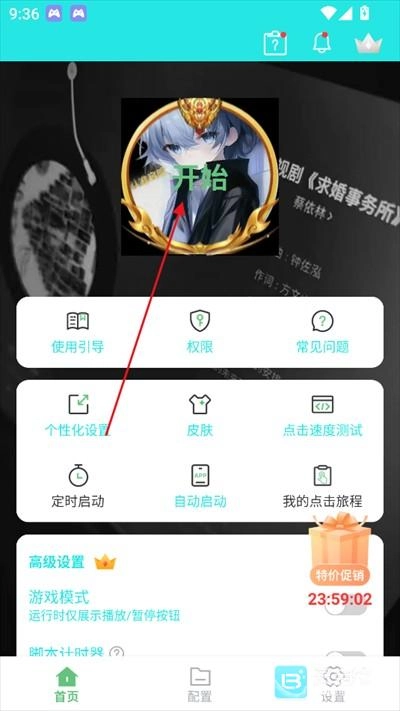 点击个人头像的“开始”。