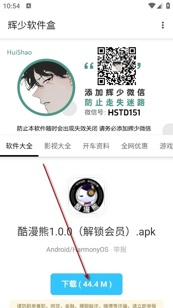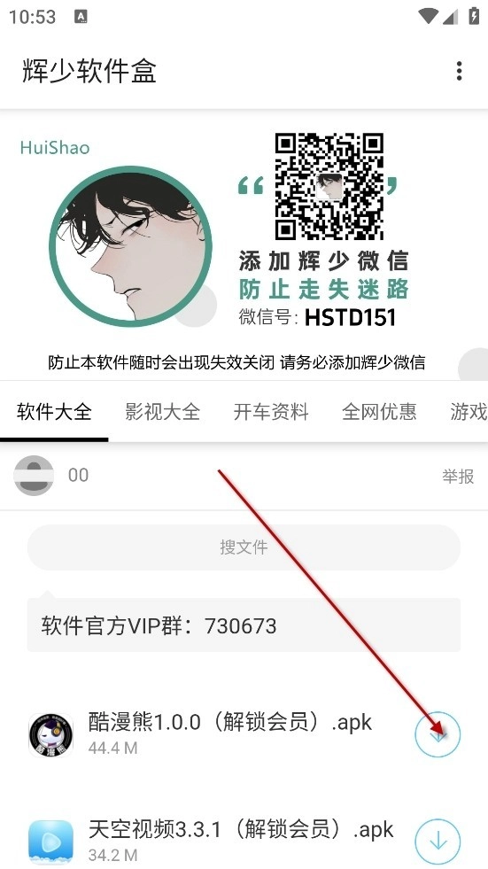 2、找到你想的软件点击箭头所指,如灵宝小编选择的是酷漫熊1.0.0解锁会员版