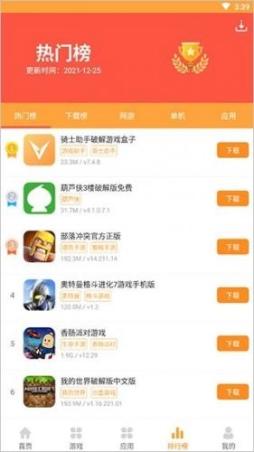 这里可以查看软件、单机、网游、榜等等的热度排行榜。