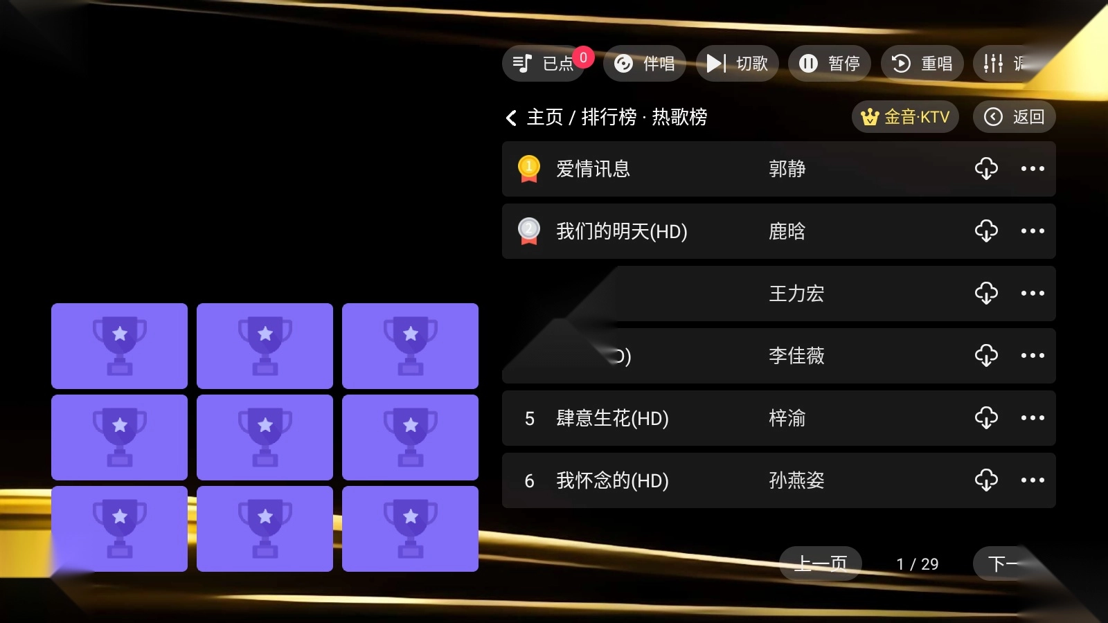 1.打开金音KTV,点击歌曲排行榜