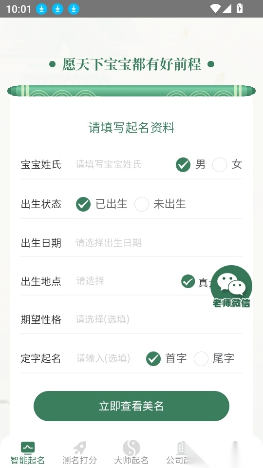 周易测名字打分是一款专注于专业起名与测名的应用软件,为用户提供全方位的名字评测服务。用户可对自行拟定的名字进行多维度剖析,获取详尽的测试分析内容,查看科学且具权威性的测名结果,清晰了解测名详情,从而对名字展开全面评估,轻松知晓名字的分数及发展趋势。平台内汇聚了海量名字库资源,众多国学经典中的名字文化可供深入探索,助力用户高效便捷地起名。只需输入姓氏与名字,即可快速生成候选名,方便用户从中精选高分优质名字并进行精准筛选。不仅如此,该软件还配备了专业的国学大师团队,为有需求的用户提供一对一的定制服务,量身打造专属好名。有需要的用户不妨即刻前往本站体验使用!