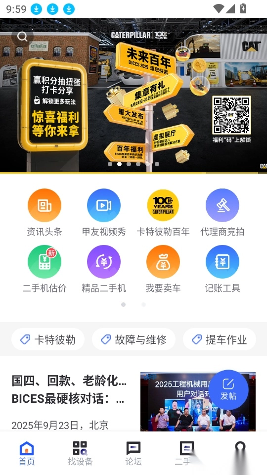 铁甲是一款面向工程机械从业者的专业服务平台软件,活跃的线上工程机械论坛,用户可加入对应板块畅聊各类话题,实时结识好友并查看附近同行,便于高效讨论行业相关内容、及时咨询设备故障问题并获取专家解答。平台支持二手工程机械设备的实时交易,提供专业的设备交易服务,用户可一键查询真实购机价格,轻松完成交易;此外,铁甲安卓版还汇聚了海量替班、活源信息,方便用户进行求职招聘、实时寻找工作机会,获取真实可靠的活源信息,有需要的用户欢迎前往本站使用!