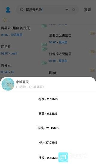 3、点击喜欢的歌,选择的品质,或者直接在线播放;