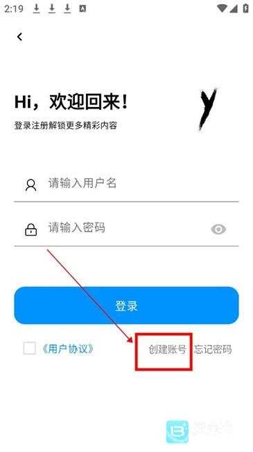 2、进入到登录页面,点击创建账号选项