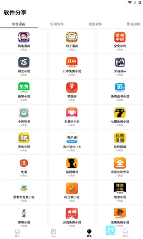4、小说漫画、实用软件、原创软件、影视追剧、听歌软件;