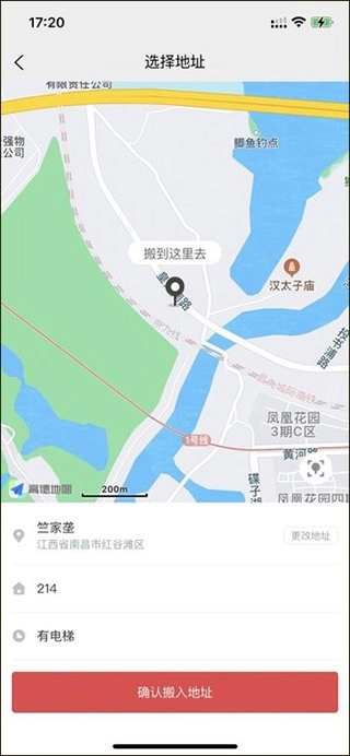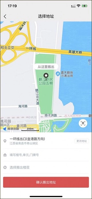 2、进入地图的页面上选择地址,然后填写信息和选择楼层,点击“确认搬出地址”;