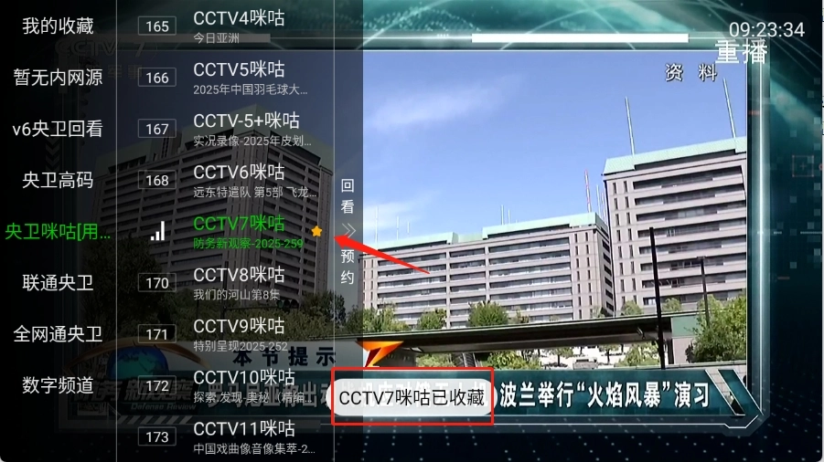 4、可以在“我的收藏”中查看收藏的电视频道。