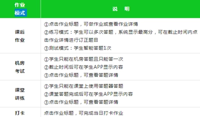 错题本:收录做错的题目,方便复习。考试模式或机房模式下的笔试类和听说模考类作业,且分数低于60分(百分制)的,会收录于错题本。