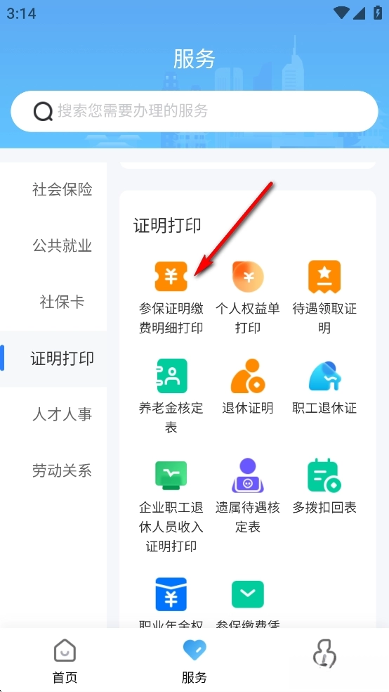 点击【参保证明缴费明细打印】去进行打印